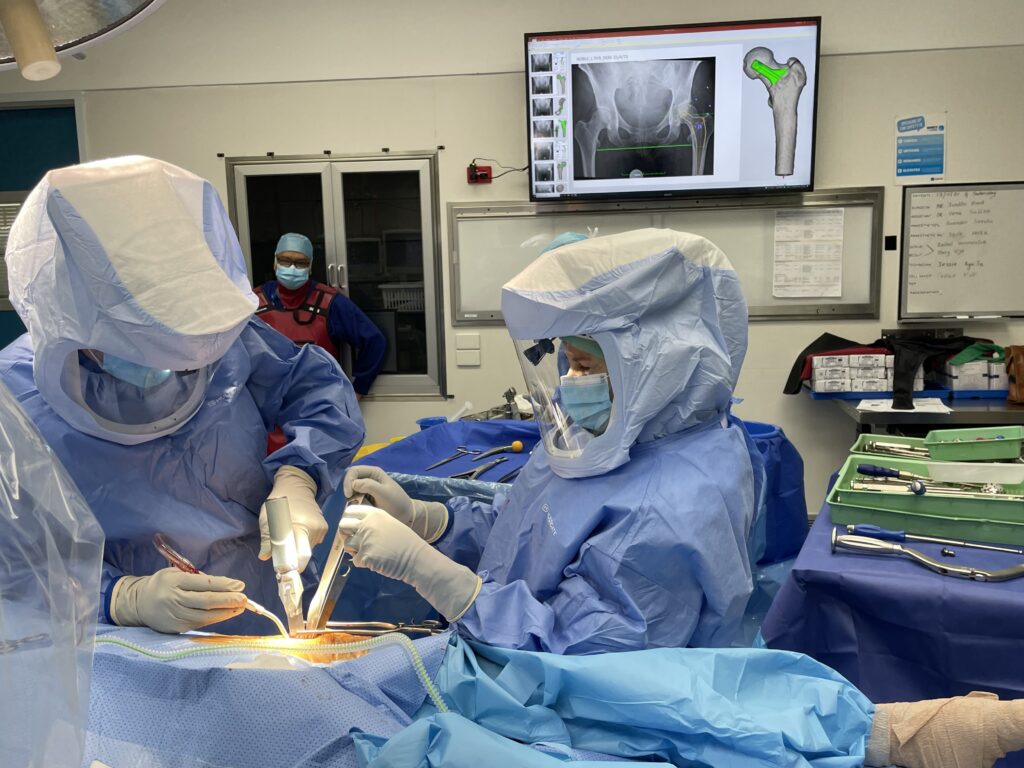 During your procedure, your surgical team may use MyHip Verifier and real-time imaging tools to confirm the accurate placement of your hip components while you’re in theatre. This technology allows your surgeon to check leg length, joint offset, and component orientation against your personalised surgical plan.