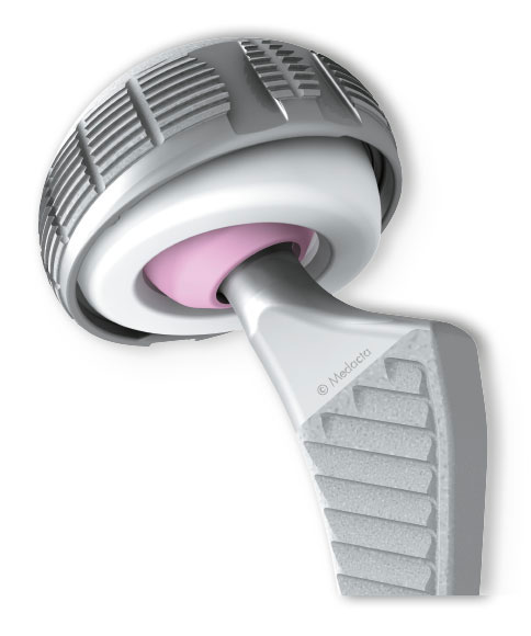 The acetabular component is the part of the implant that replaces the socket of your hip joint. It typically consists of a titanium shell that fits into the pelvis, and a smooth inner liner made of either ceramic or highly cross-linked polyethylene.