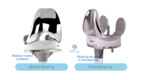 Mobile bearing designs allow some movement between the insert and the baseplate, which may offer better rotation for selected patients.