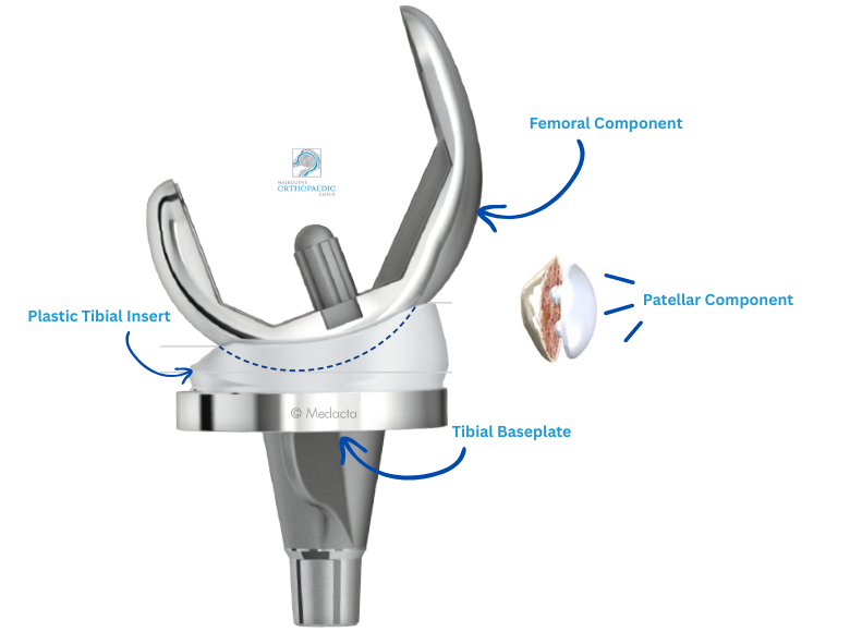 Knee implants are typically made from a combination of cobalt-chrome or titanium alloys, and high-grade polyethylene (plastic). These materials are biocompatible, which means they are designed to function safely within your body. Modern implant designs and materials aim to reduce wear and extend the life of the replacement. Your surgeon may select either a fixed bearing or mobile bearing implant design